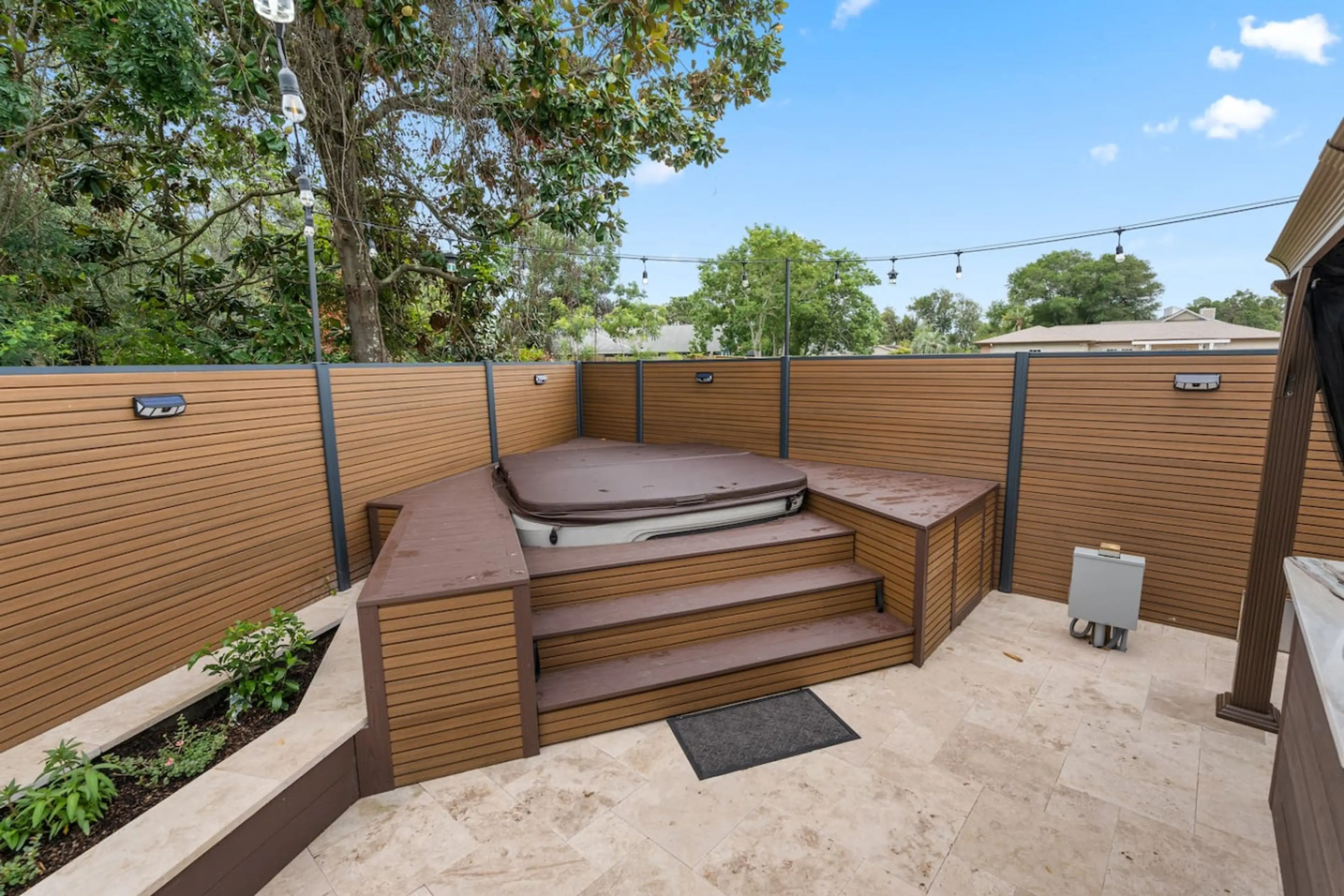 Located in Panama City Beach, this beautiful brand new 4 bedroom/2 bathroom home is located in the lagoon neighborhood just minutes from the beach! Complete with an entire outdoor entertainment area including a 6 person Hot tub, firepit, covered seating, turf cornhole game, outdoor kitchen with lar...